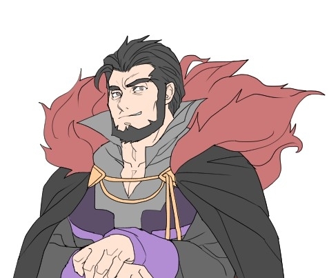 王が考えごとをしつつ、顎の黒い髭を左手の指でいじるかたわら、壁にかけられた燭台の炎がゆらゆらと揺れていた。