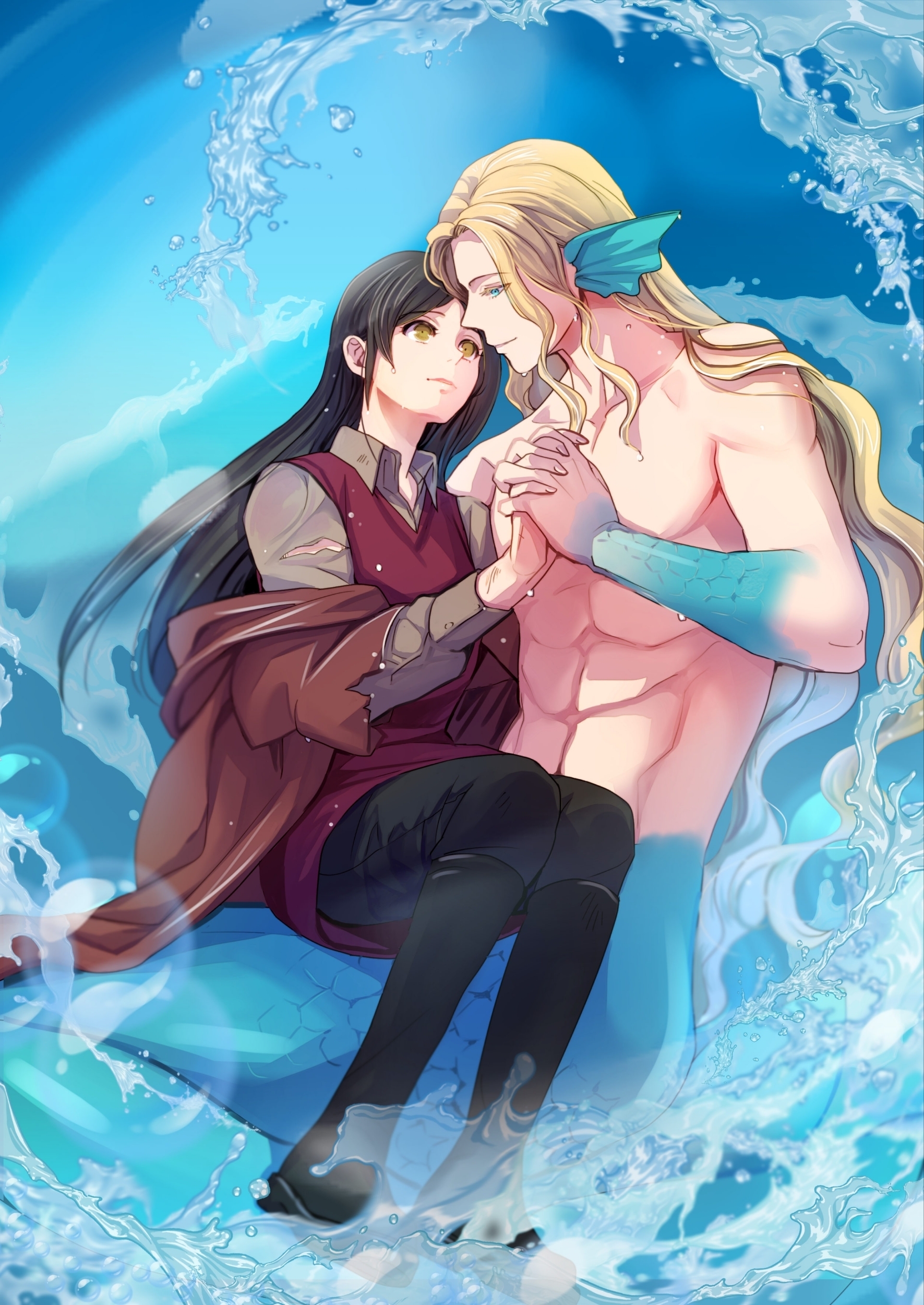 耳代わりである青緑色のひれのようなものがゆらりゆらりと動いていた。長いまつ毛に縁取られた切れ長の目には憤怒の色は跡形もなく、今は穏やかな光が宿っている。白皙の肌を滑り落ちる水滴がきらきらと輝いており、無意識ながらもついため息が出てしまう。こんな時だが、レイアは美しい人魚姿のアリオンについ見惚れてしまう自分を抑えるのが苦しかった。