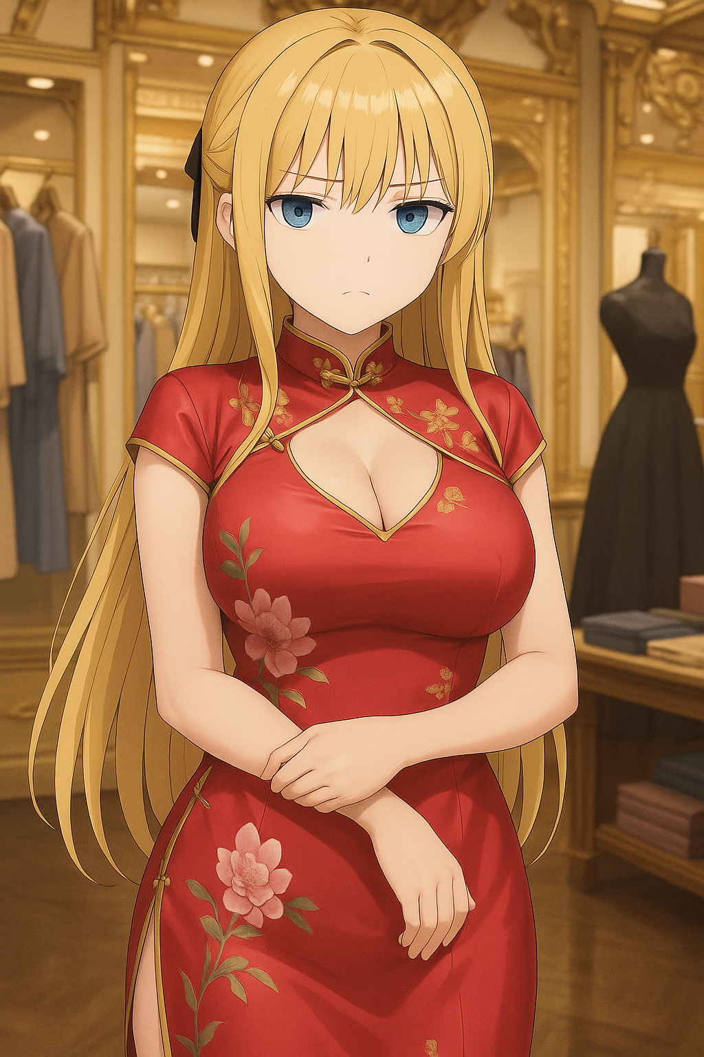 全く疲れを見せてない店長の手には赤く、金の刺繍が美しい模様が施されたチャイナドレスが光っていた。