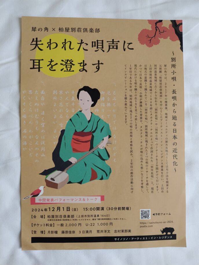 失われた唄声に耳を澄ます ~別所小唄・長唄から辿る日本の近代化~中間発表 (柏屋別荘倶楽部・長野県上田市) 2024/12/1