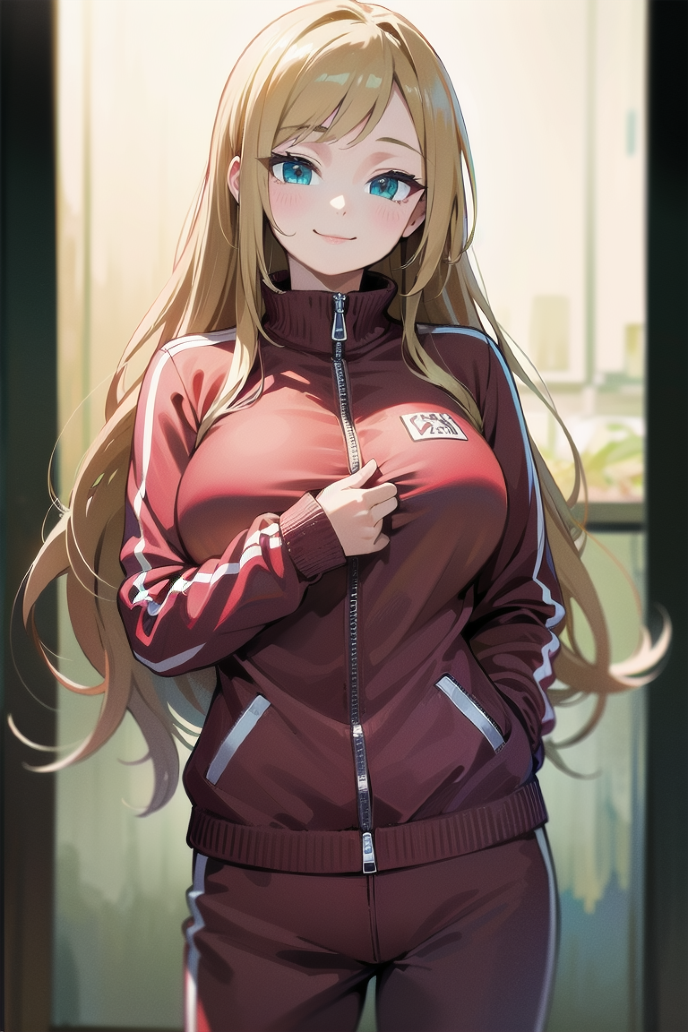 上下ジャージ姿であるが そのどちらにも金の龍の刺繍が施されている。