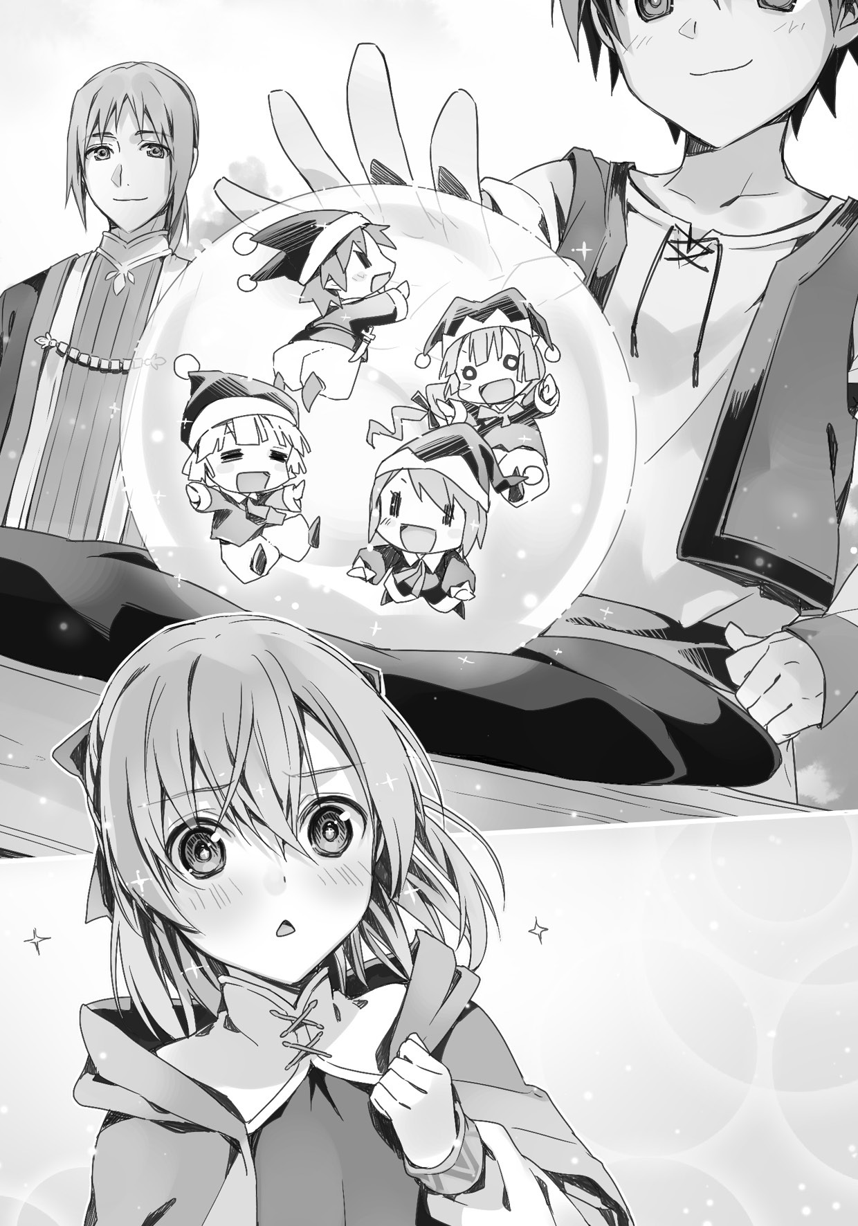 そうこうしているうちに、ガイがおそるおそる水晶玉に手を置く。すると、赤い服の小人がピクリと反応した。ガイを見上げ、ちっちゃな両手を伸ばして振り回す。