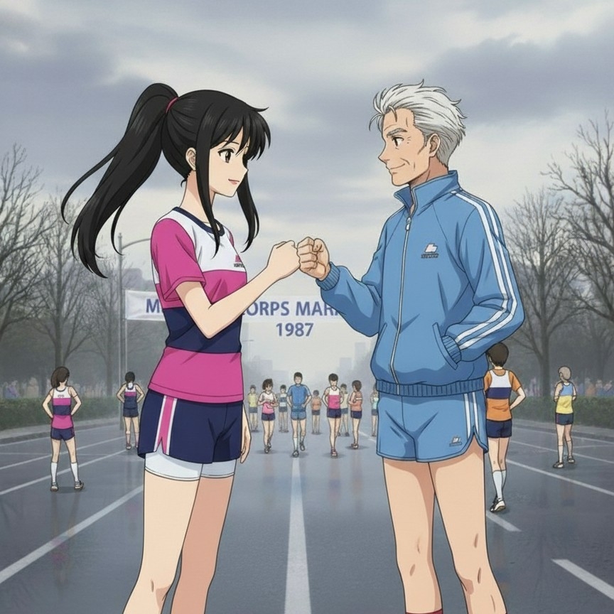 博士は優しく微笑み、木陰のベンチに腰を下ろした。ハーブティーの入った水筒を差し出しながら、丁寧に説明を始めた。「マラソンは、ただの距離じゃないよ。人生のメタファーさ。42キロ195メートル──それは、諦めそうになる壁を越える旅だ。君のクロノスの鍵のように、時を超えて自分を見つけるんだ。最初は10キロから始め、徐々にビルドアップ。栄養、休息、精神のバランスを整えれば、誰でも可能だ。私も45歳で本格的に再開した。君なら、きっと素晴らしい初マラソンになるよ。」