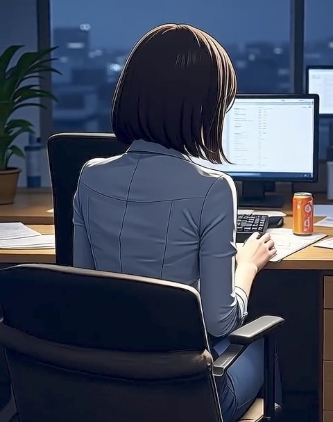 その夜、残業を終えたアリスは、冷たい雨の路地をよろめいていた。カバンの中で、栄養ドリンクの空き缶がカタカタ鳴る。頭は霧のように重く、明日のタスクがぐるぐる回る。と、その瞬間――