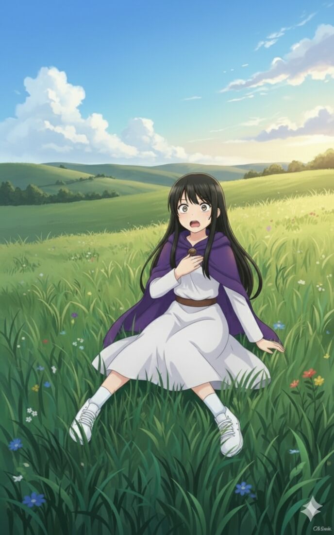 目を開けると、青々とした草原が広がっていた。風は甘く、遠くの山脈が朝日を浴びて輝く。アリスは立ち上がり、呆然とした。