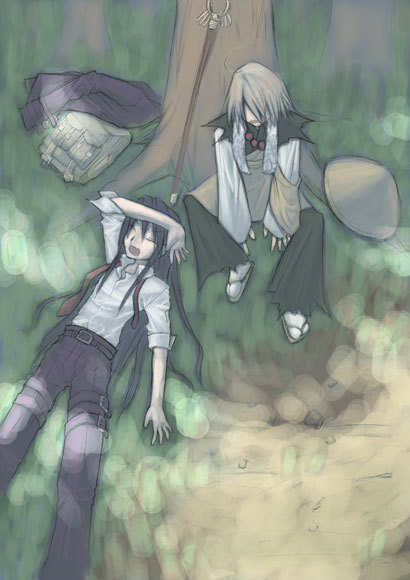 信一郎はその木陰に仰向けに倒れ、幽谷響は根元へと腰を下ろす。