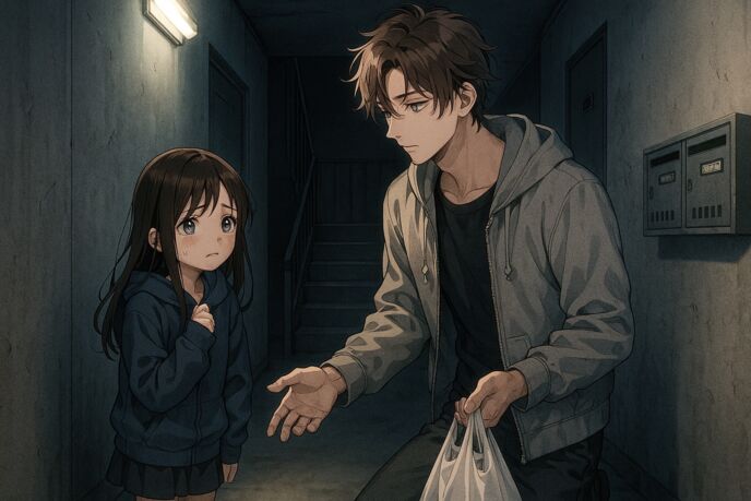 さっき、小学生くらいの子が階段下で一人でいた。