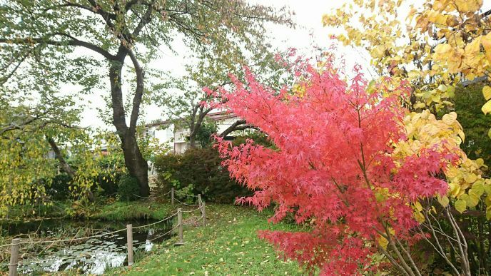 「もうこんなにもみじが赤く染まってるよ、秋だねぇ」