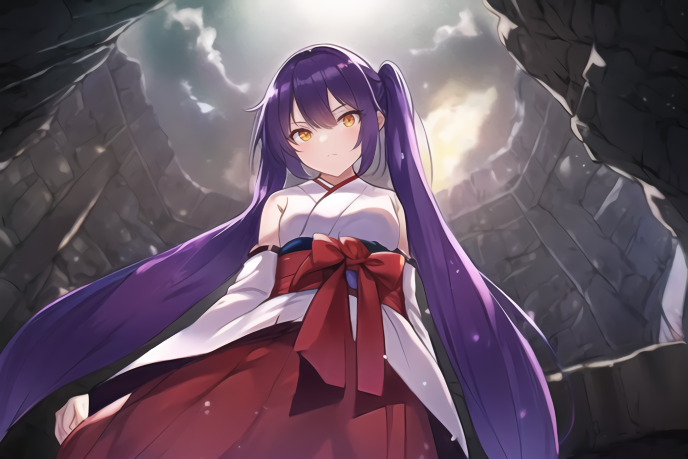 彼方の問いかけに対し、巫女の少女は鈴のように凛と通る声で応じて向き直った。意志の強そうな流線形の澄んだ目が彼方の目を捉えた。愛嬌や愛想がほんの僅かも存在しない目線。