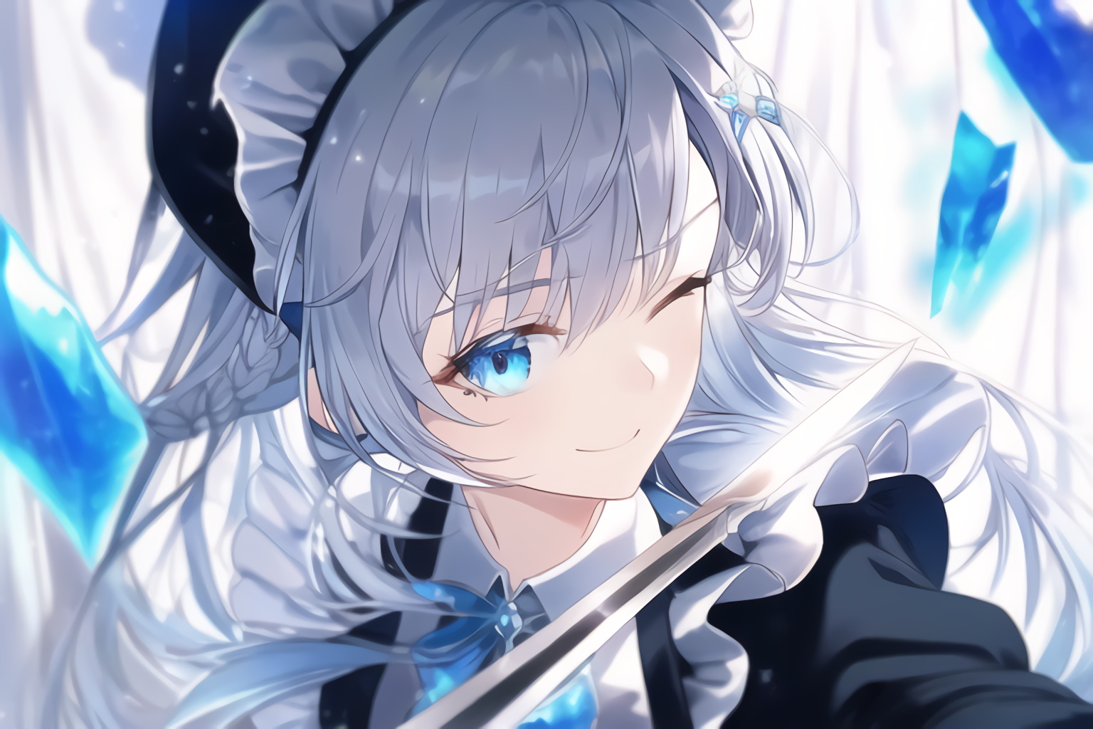 彼方が状況を把握するための思考を始めたとき、ジュリエットの体躯は既に彼方の正面に潜り込んでいた。砕ける氷の向こうで、軽く身を屈めて長い仕込みナイフを構えている。