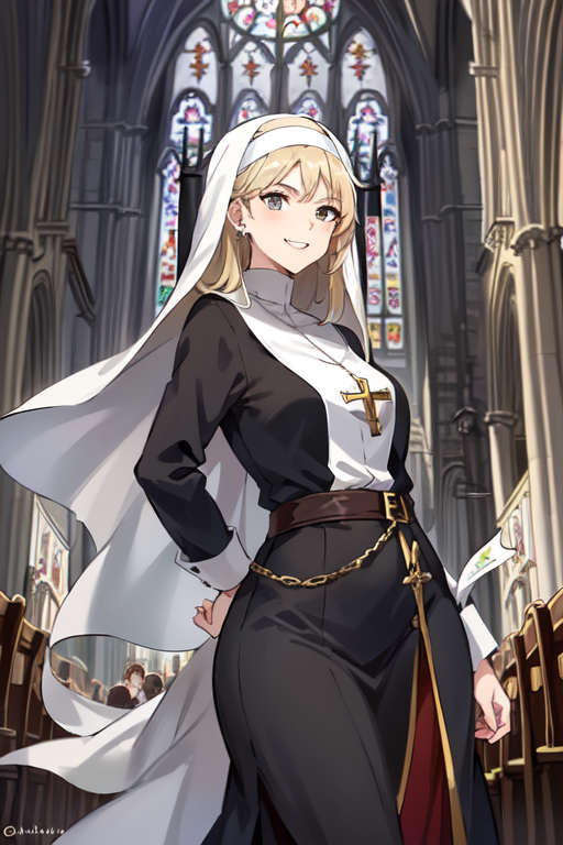 すると、修道女は、微笑した後、顔を入り口の方に向けて、またこちらに向き直る。