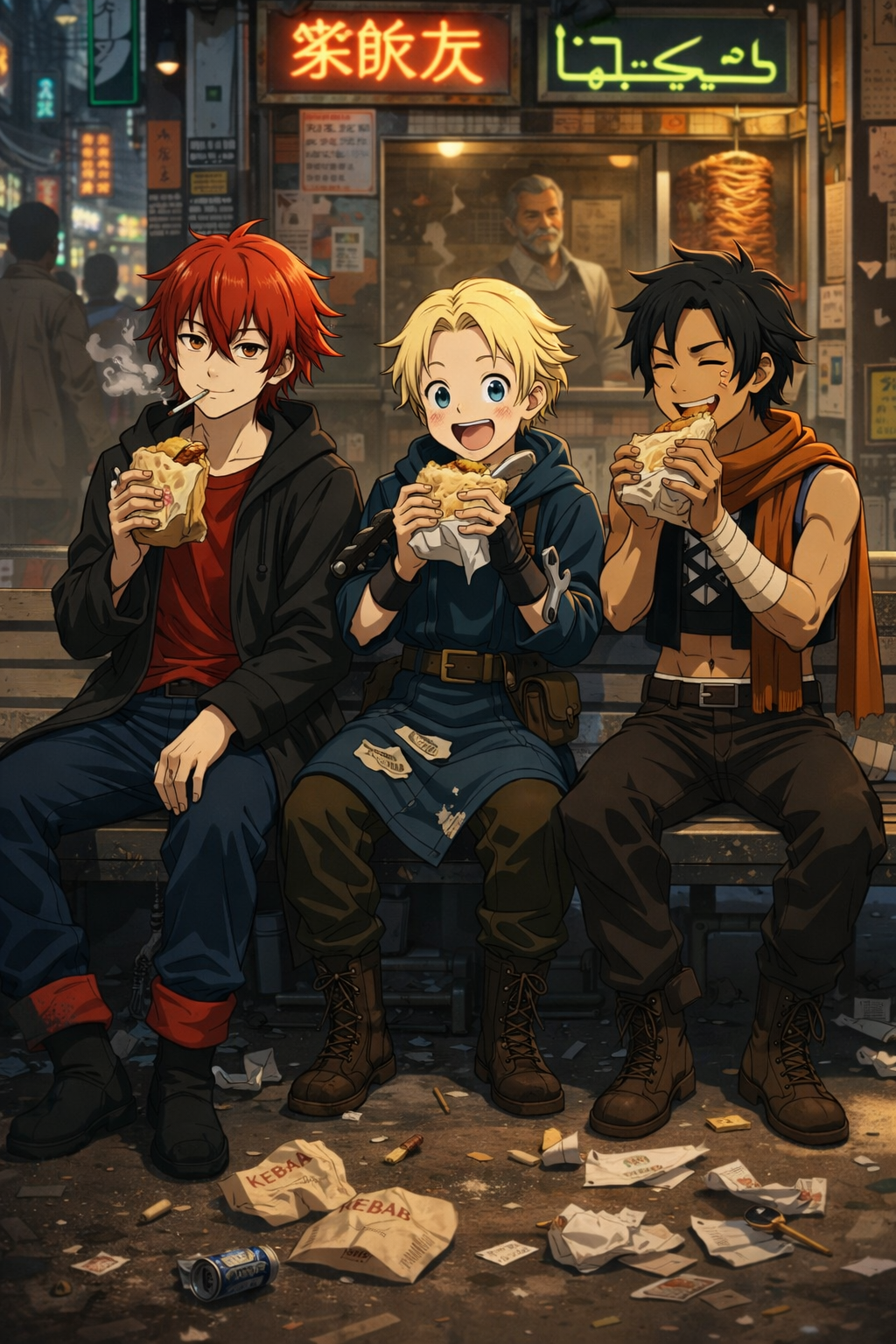 自分たちの周りには、食べ終わったケバブの包み紙、油で染みた紙ナプキン。