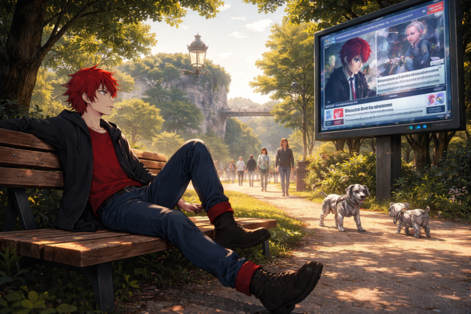その頃レイスは、セントラルパークの片隅に立つ大型サイネージの前にいた。