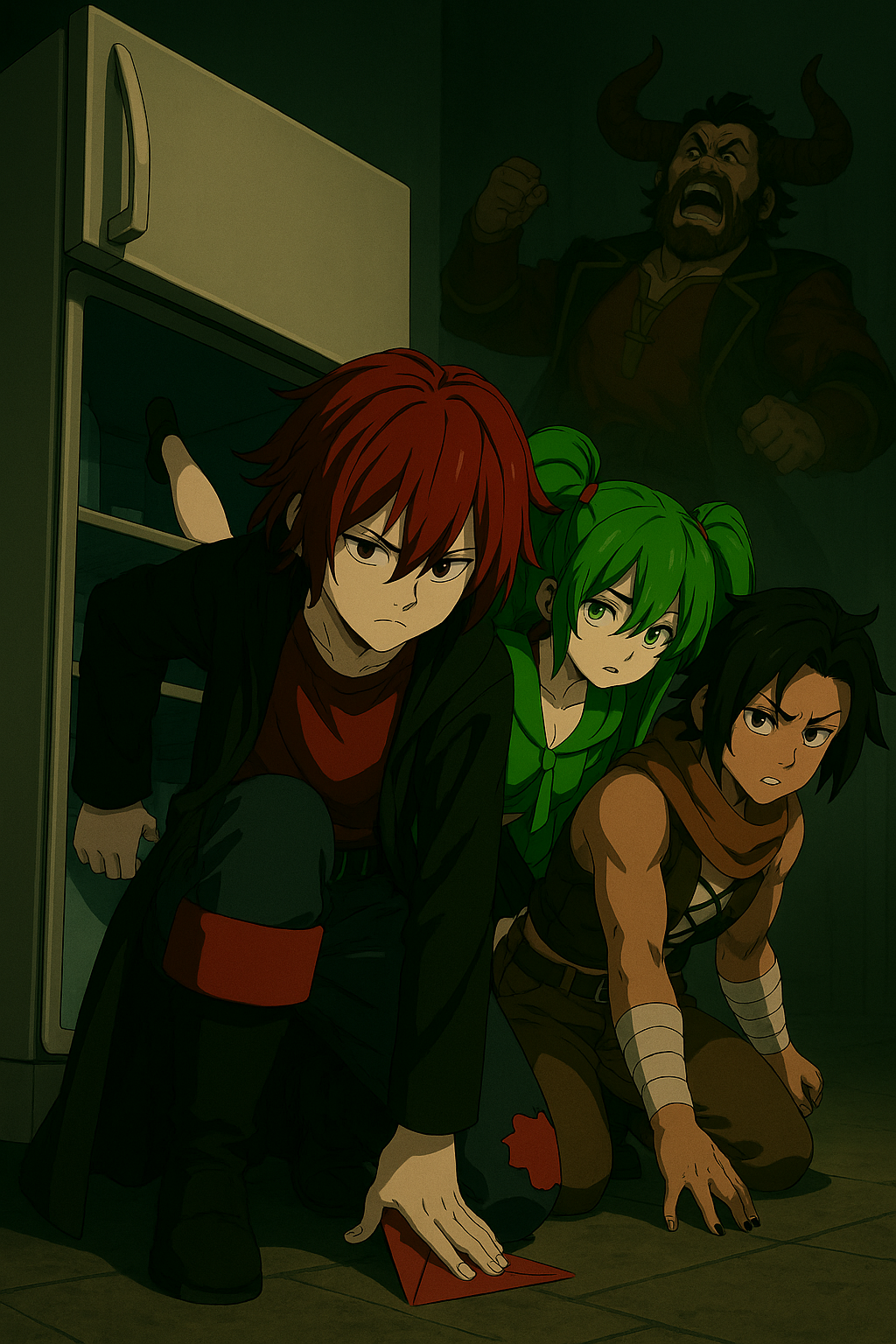 その瞬間――冷蔵庫の中から、青白い転送光と共にクロノチームがぞろぞろ現れる。