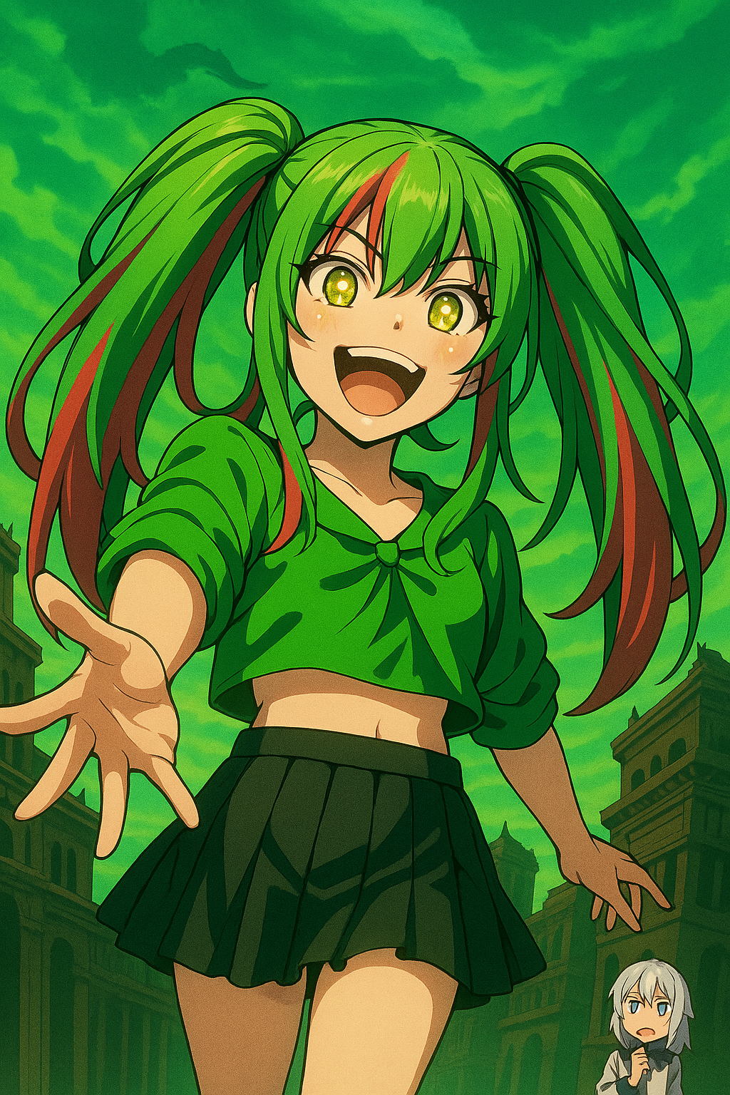 深緑に霞む空。どこか毒を孕んだような湿った光が、街全体を淡く包み込んでいた。