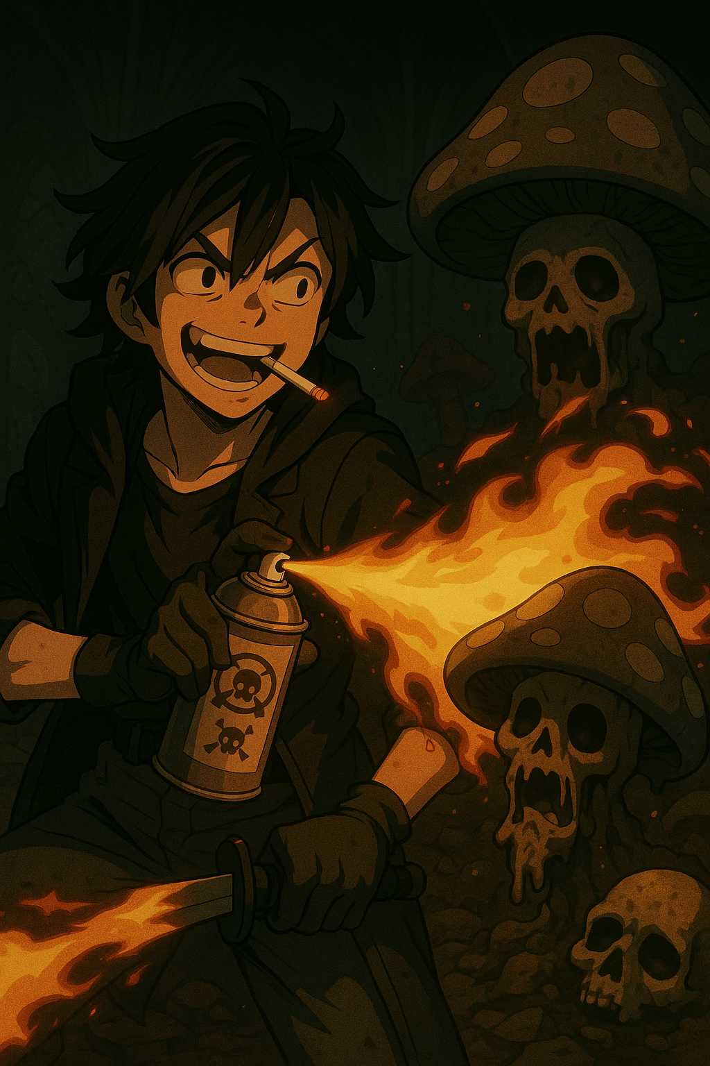 熱風が唸り、逃げ場の失われた胞子たちが断末魔のように空気を震わせる。