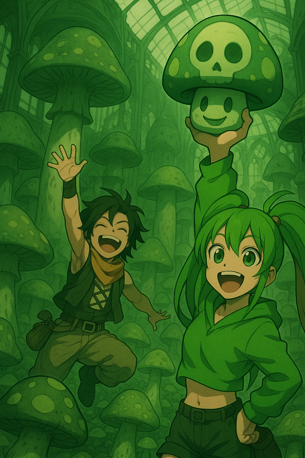 天井は見えない。そこに広がっていたのは、濃緑に染まったキノコの森だった。