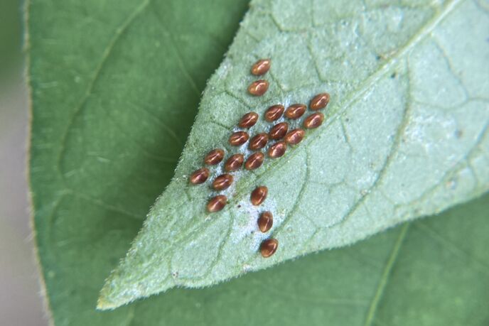 葉っぱの上に黄金色の卵が! ホオズキカメムシ