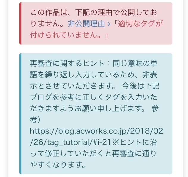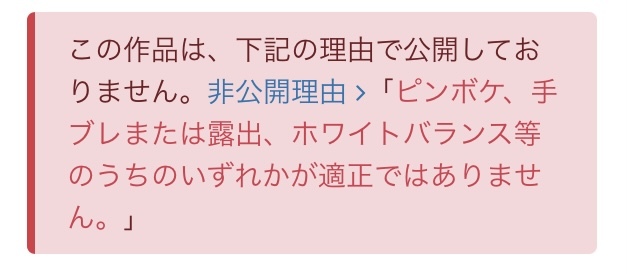 ただ、他にも夕日の写真を投稿した時に同じようなタグ付けをしたのに審査に通ったので、厳しい審査者にあたってしまったのかもしれません。