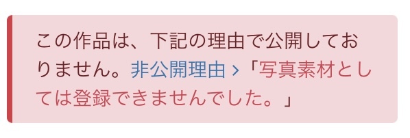 正直、上の「写真素材としては登録できませんでした。」との違いがわかりません。