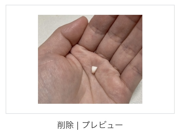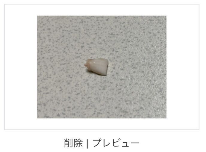 写真ACで「乳歯 手のひら」で検索するとこれと同じような構図の写真が数点出てくるので、何がダメなのかよくわかりません。