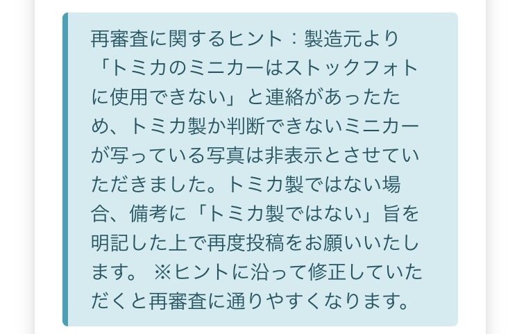 この場合、ミニカーが「トミカ」かもしれないと疑われたみたいです。