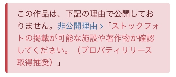 「ストックフォトの掲載が可能な施設や著作物か確認してください。」