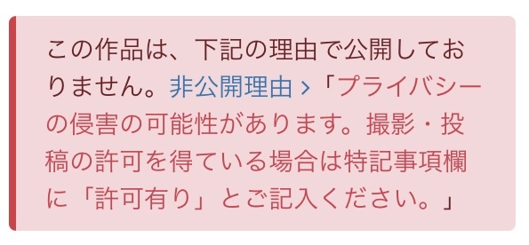 その他、公序良俗に反していたり、個人情報が写り込んでいる場合なども非公開となるようです。