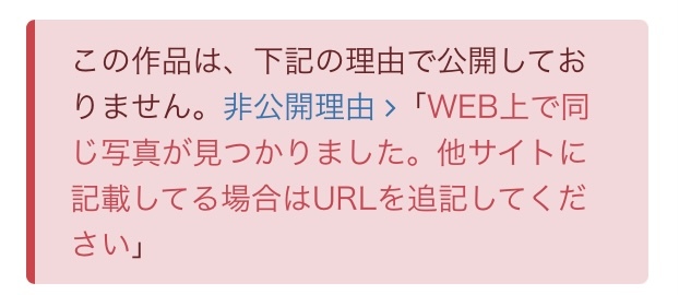 「WEB上で同じ写真が見つかりました。他サイトに記載している場合はURLを追記してください。」