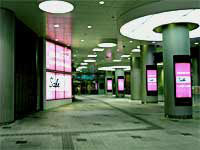 駅ビルの円柱に掲げられたコスメのポスターが、今宵は見る者がおらずとも健気に美を映している。