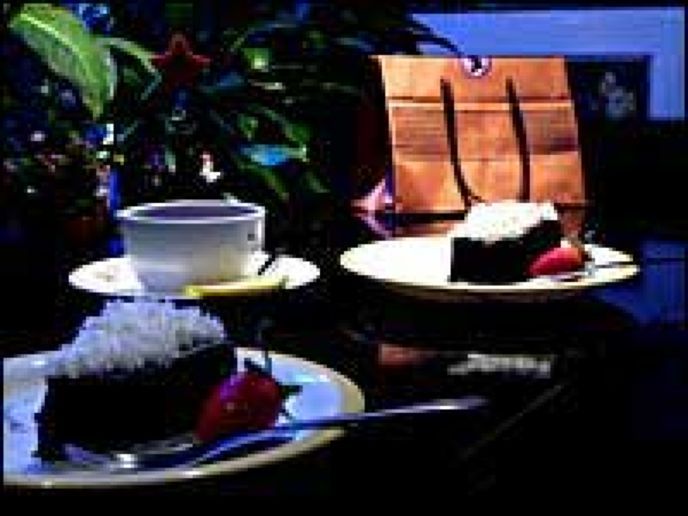 ケーキ皿の奥には、カズヤがバイクに掛けていた小さな紙袋が口を閉じてちょこんと佇んでいる。