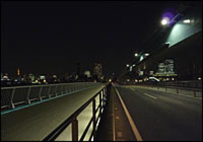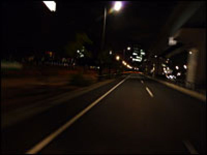 街灯の暗い、荒れた路面の、人影の無い道を行く。