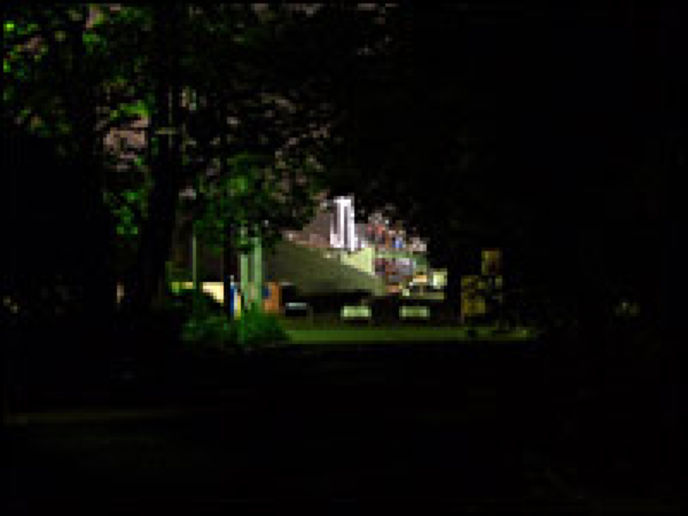 暗闇の中に巨大な建物が現れる。