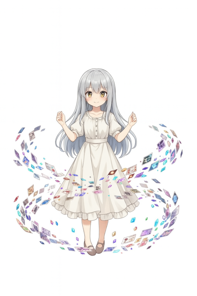隣の部屋から、髪も、服も、何もかも、真っ白な装いの少女が姿を現す。