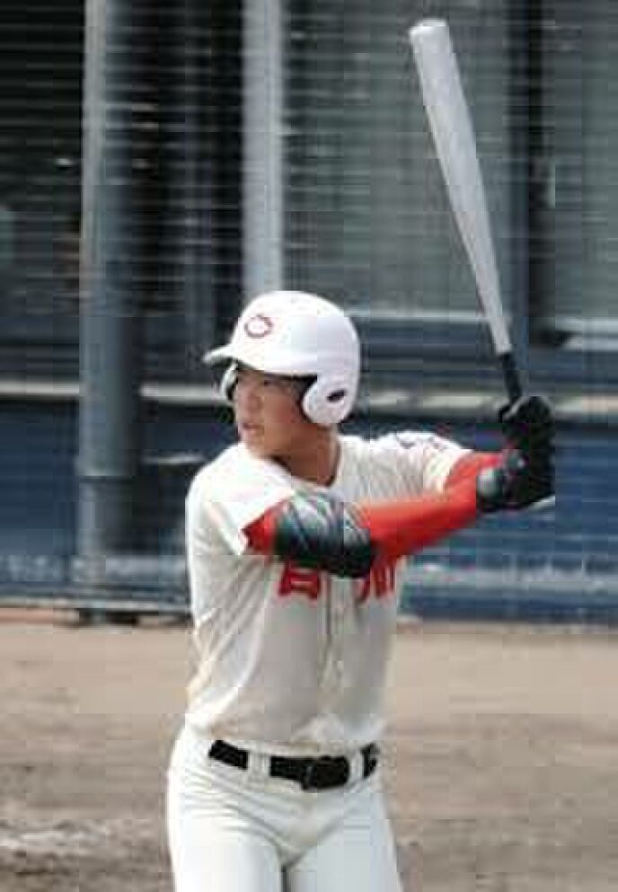 3年生の春の県大会準決勝・御所実戦で中堅右へのソロ弾(中120m&両93m)を放っている。