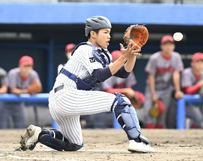 この日は東北楽天の山田スカウトが視察し、「肩も強く、球を取ってからの早さもある。将来的に正捕手としてなる要素をいくつも兼ね備えている選手。リーダーシップもあるし、キャプテンシーも持っている」と技術だけでなく内面についても非常に高く評価した。