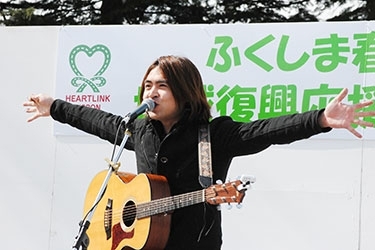 福島の皆さんが元気になればと、2009年に発売した僕の代表曲「福の歌」の歌詞を一部リメークして「福の歌~頑張っぺ ver.~」として歌いました。他にも「福島人」「福島ぼくらの風」「千輪咲の花」「ただいま」など、福島を題材にした楽曲を制作しました。また、「風と ロック LIVE福島」など、さまざまな復興支援に関したイベントに参加させていただきました。
