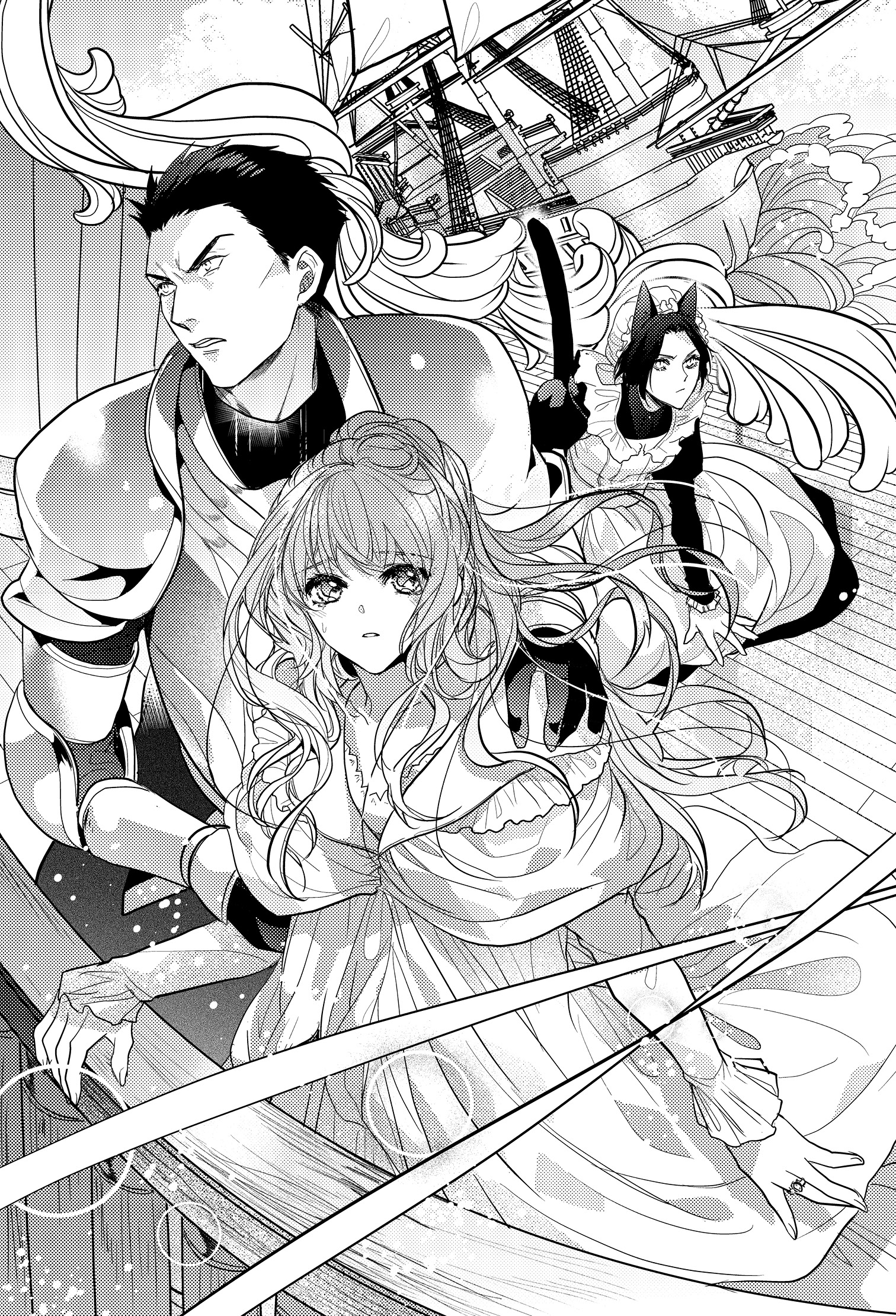 ブランシュが乗船しているコンスタンス号は、オルシュ王家が所有する船で、三本の帆柱を持つ最新型の帆船である。
