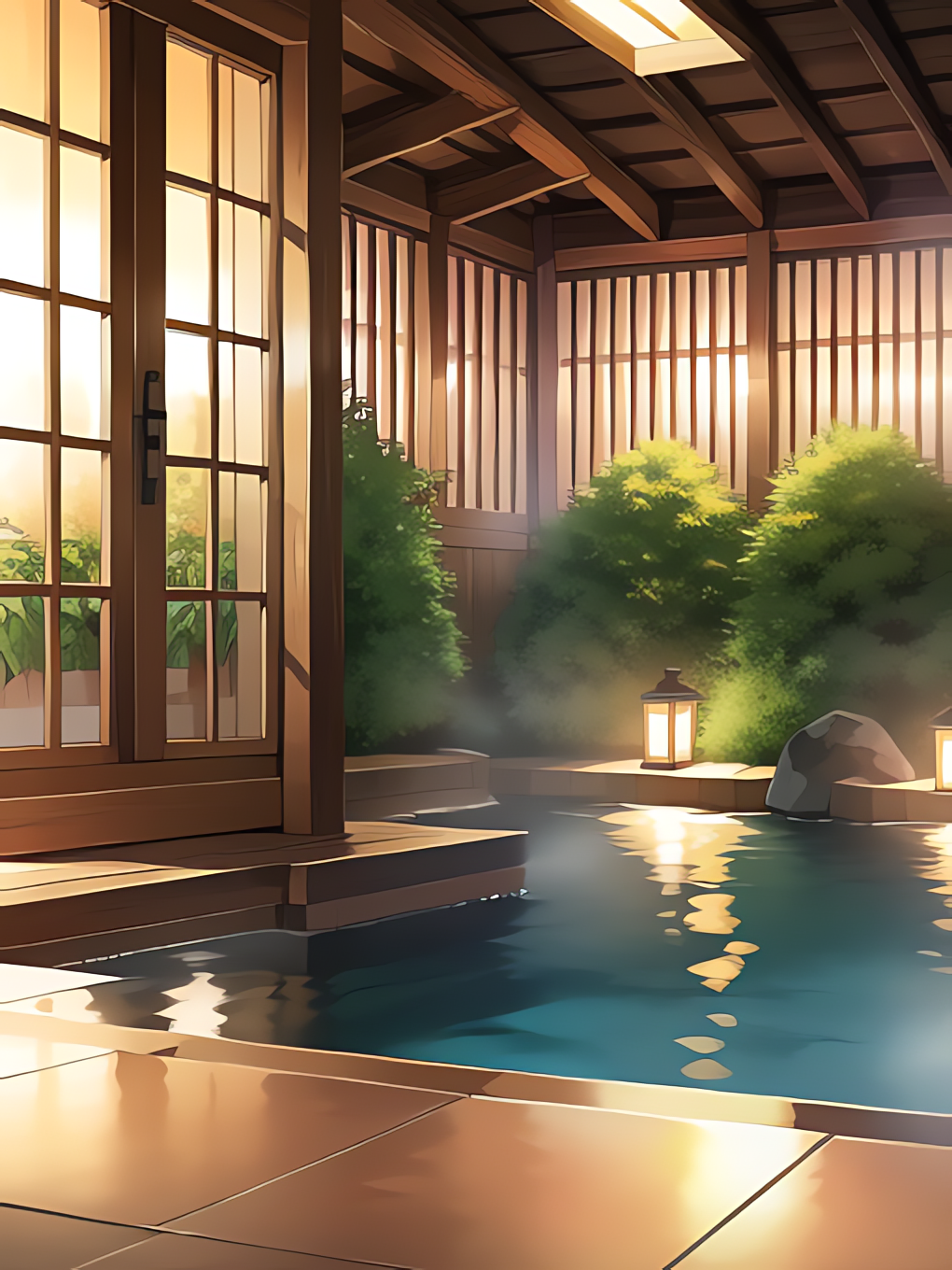 俺は温泉をみて感動した。和風の温泉が目の前に広がる。