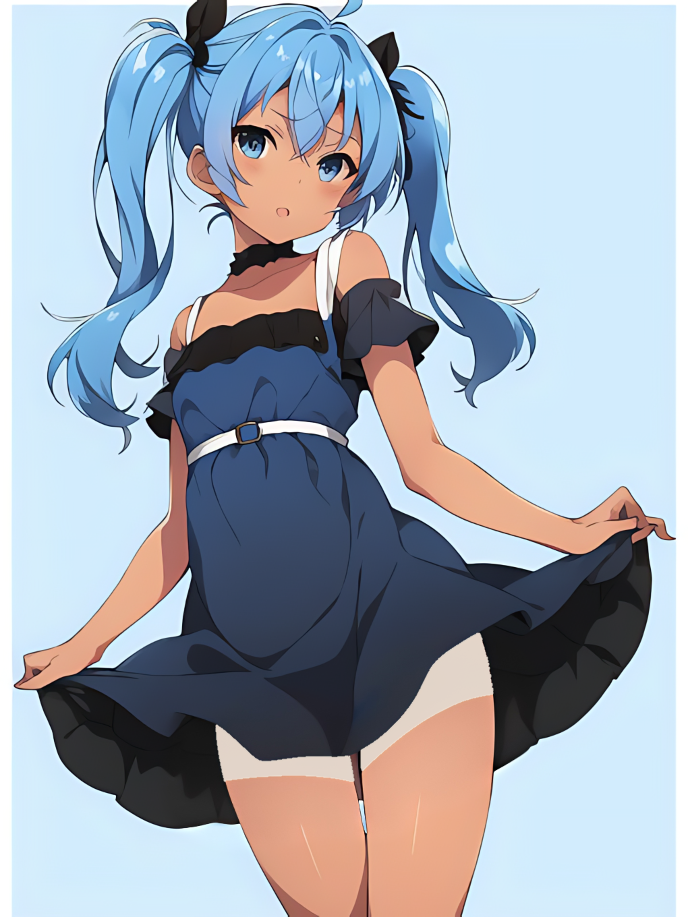 ミミはワンピースの恥を少し手で上にあげて、自分の太ももを見せつけた。ちょっとぉ! えっちぃのはだめだよぉ!