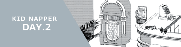 少年はまだジュークボックスに夢中で、テレビの画面に気づいていない。