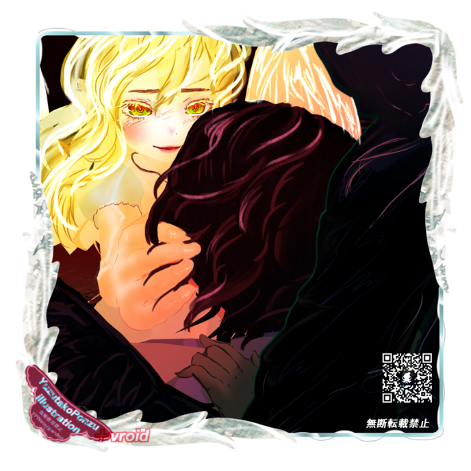 依然として、 モノクロの世界の中で――黒いローブから伸びた指を、ドッと首元に突き立てられた。 ローブの中からチラリとのぞいた腕は、 巻かれた包帯の下に、 薬草の香りを漂わせながら…。