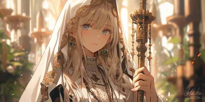 目の前に現れたのは美しく若いプリーストだった。彼女は金髪に緑の瞳、純白のローブに身を包んでいて、手には神秘的なロッドを持っていた。