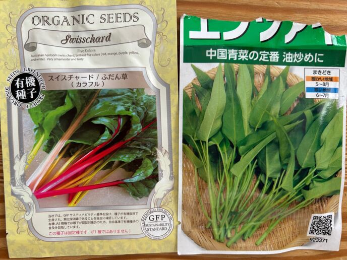 ひとつめは、左側のパッケージのスイスチャード。別名西洋ふだん草といいます。