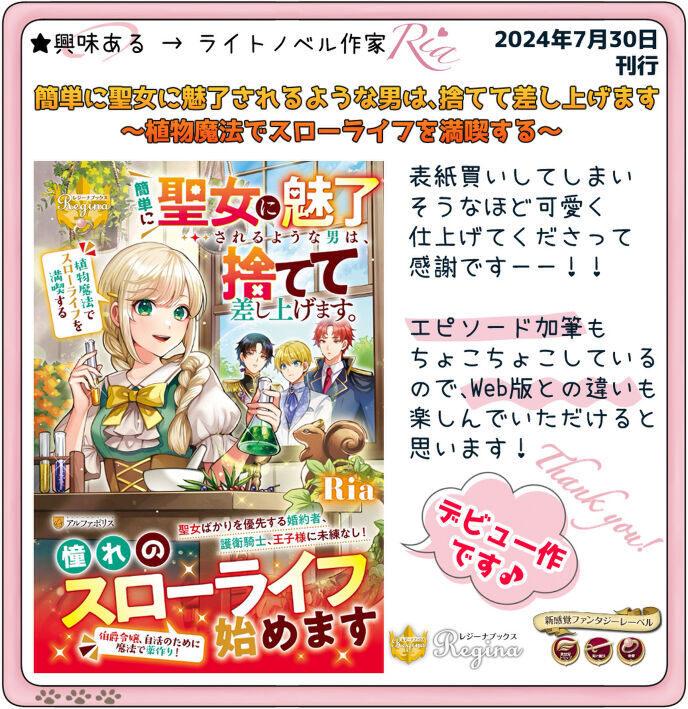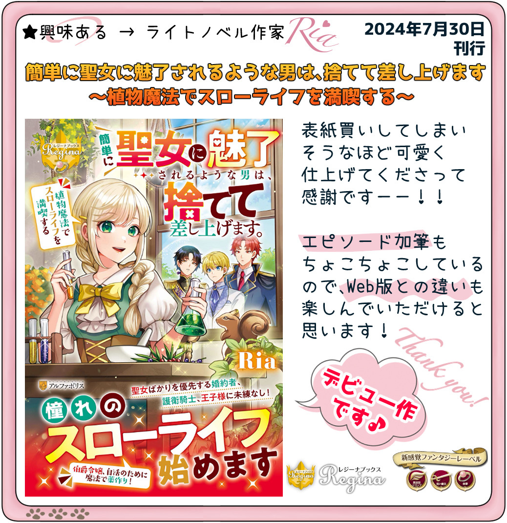 「簡単に聖女に魅了されるような男は、捨てて差し上げます。~植物魔法でスローライフを満喫する~」