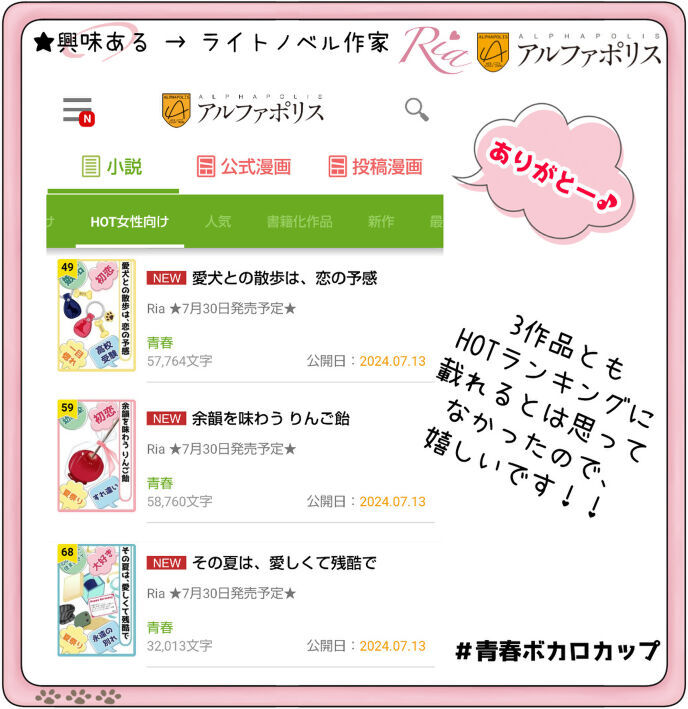 皆さんのおかげで3作品ともHOTランキングに載れました♪