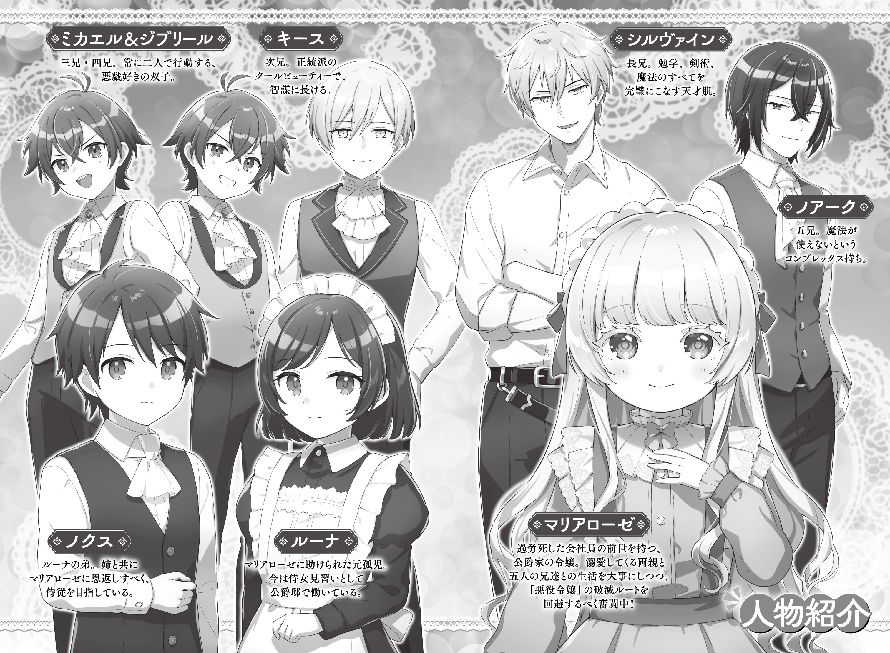 後ろには、マリアローゼと同じく動きやすい服に身を包んだ幼い姉弟、ルーナとノクスが続く。孤児だった彼らは、事件に巻き込まれて瀕死の状態だったところをマリアローゼに救われた。今は公爵家に身を寄せ、将来マリアローゼの侍従と侍女になるべく、勤勉に働いている。