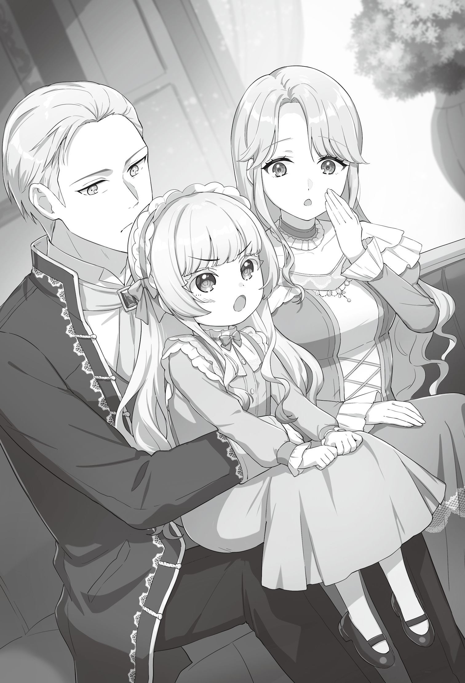 ランバートが出ていき、しばらくするとミルリーリウムが部屋に入ってくる。ミルリーリウムはジェラルドの隣に座り、寄り添うように娘と夫を抱きしめた。