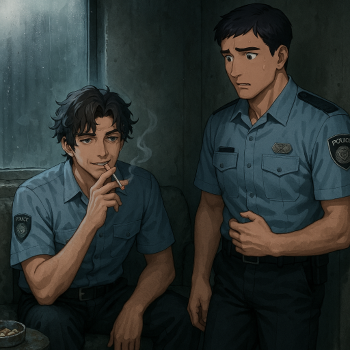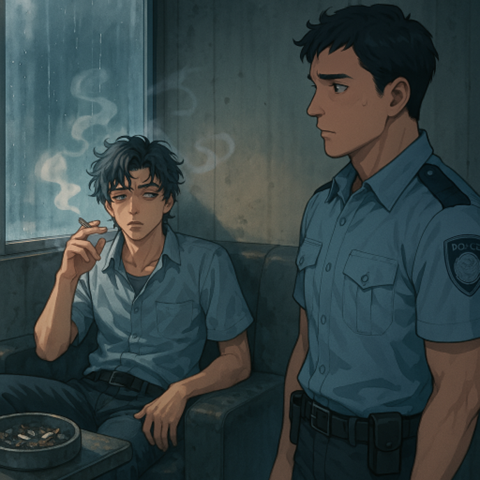 紫煙がゆっくりと空調の吸い込み口へ吸われていく。雨の音と換気扇が混じるこの箱は、たいていの説教がよく響く。