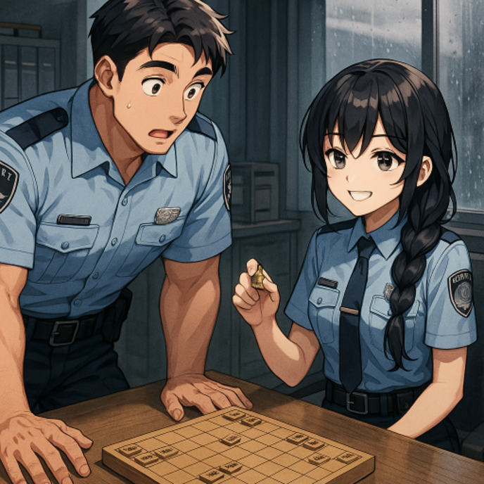 いつもどおり、ランは中佐のデスクに据えられた将棋盤へ視線を落としつつ、駒をひとつ指で弾いた。桂馬。跳ねる軌道の駒を、ちいさな指先でくるりと返す仕草が妙に板についている。雨で重くなった背中にだけ、ぽんと明かりをつけられたみたいだった。